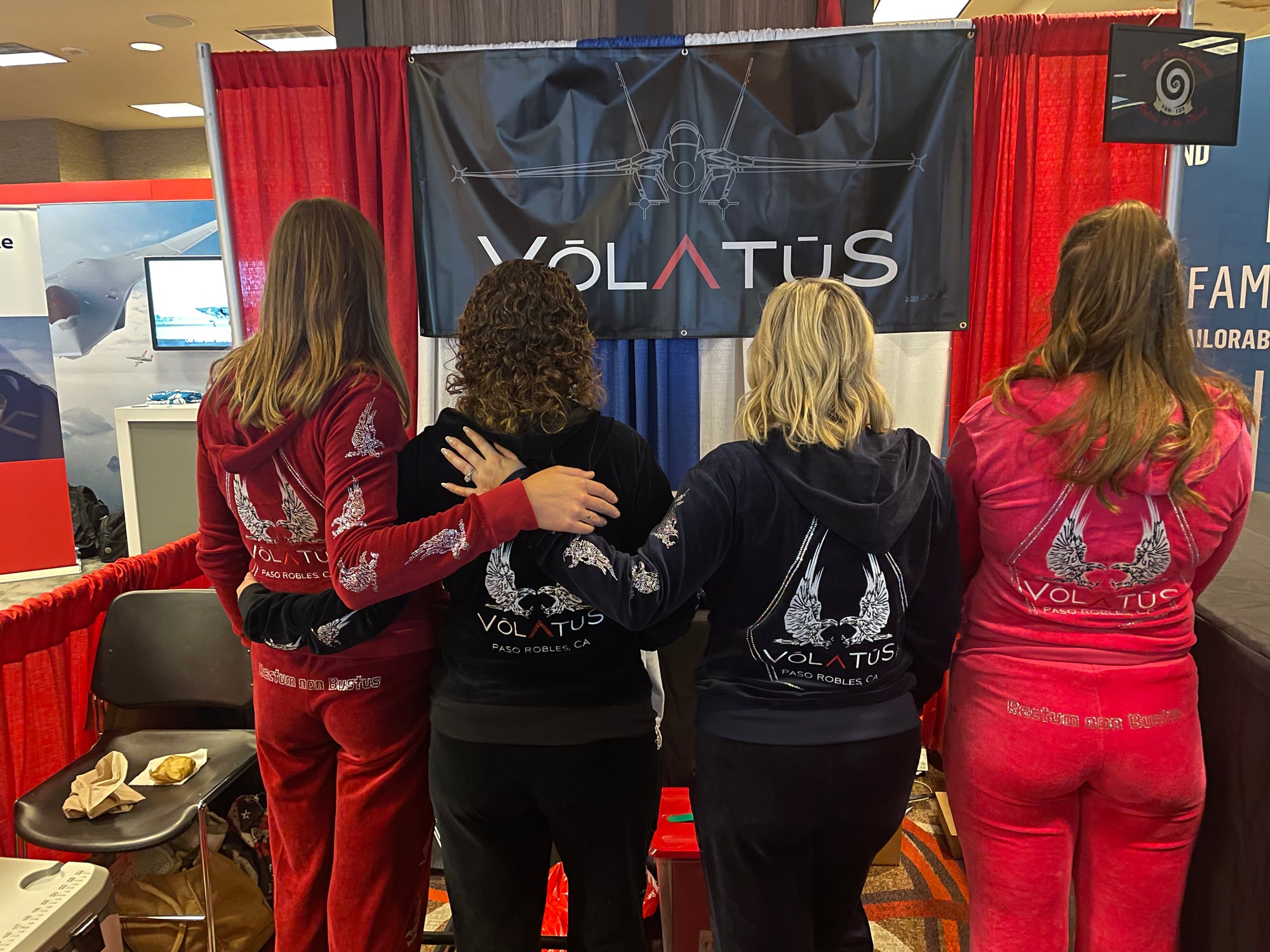 Black velour tracksuit with Volatus Winery logo embroidered on the back with custom rhinestone "coffin".  Optional embroidered callsign on the front left chest.