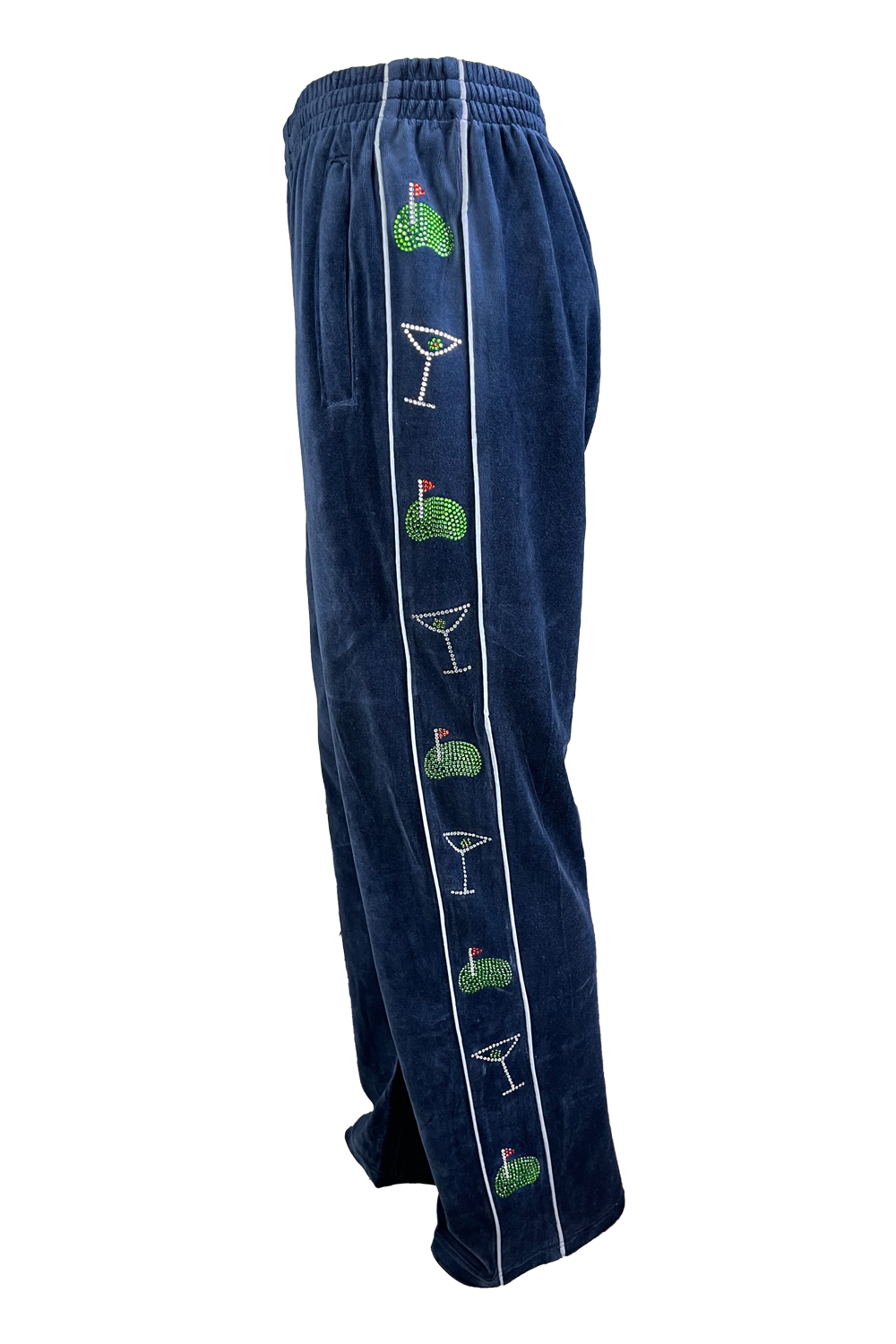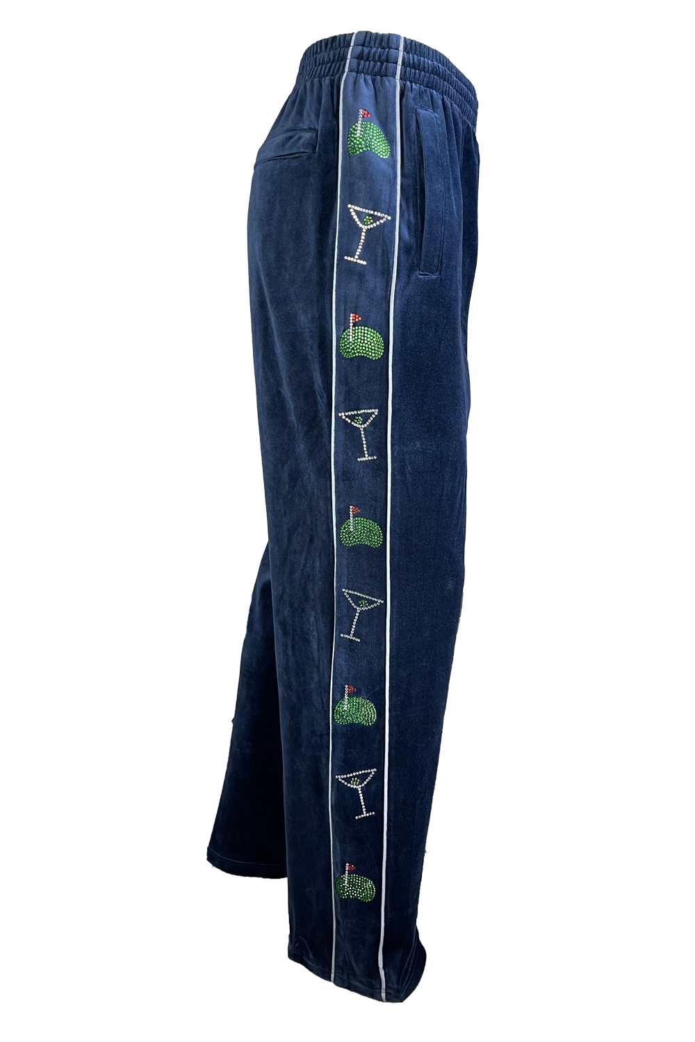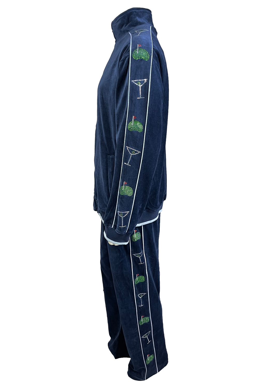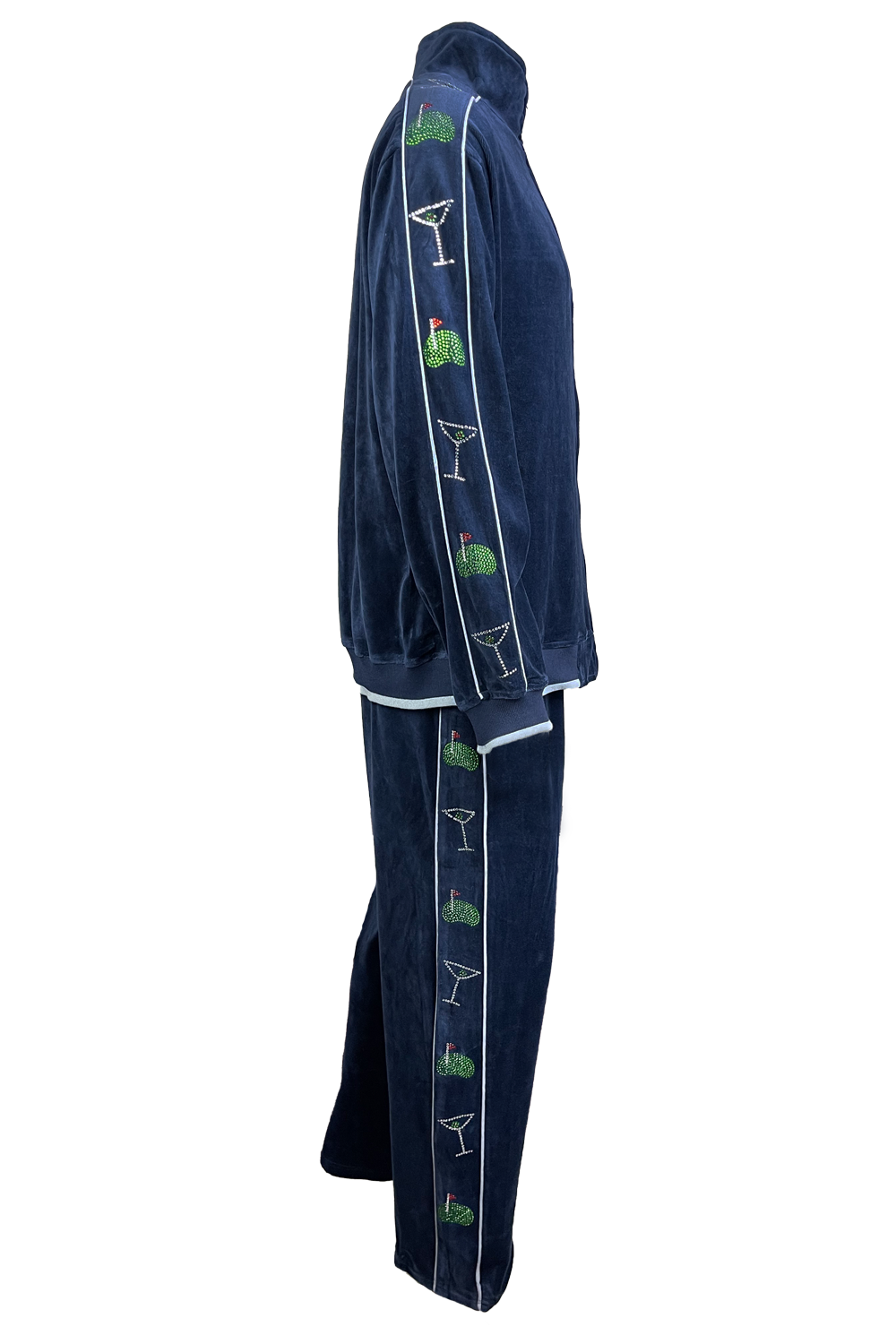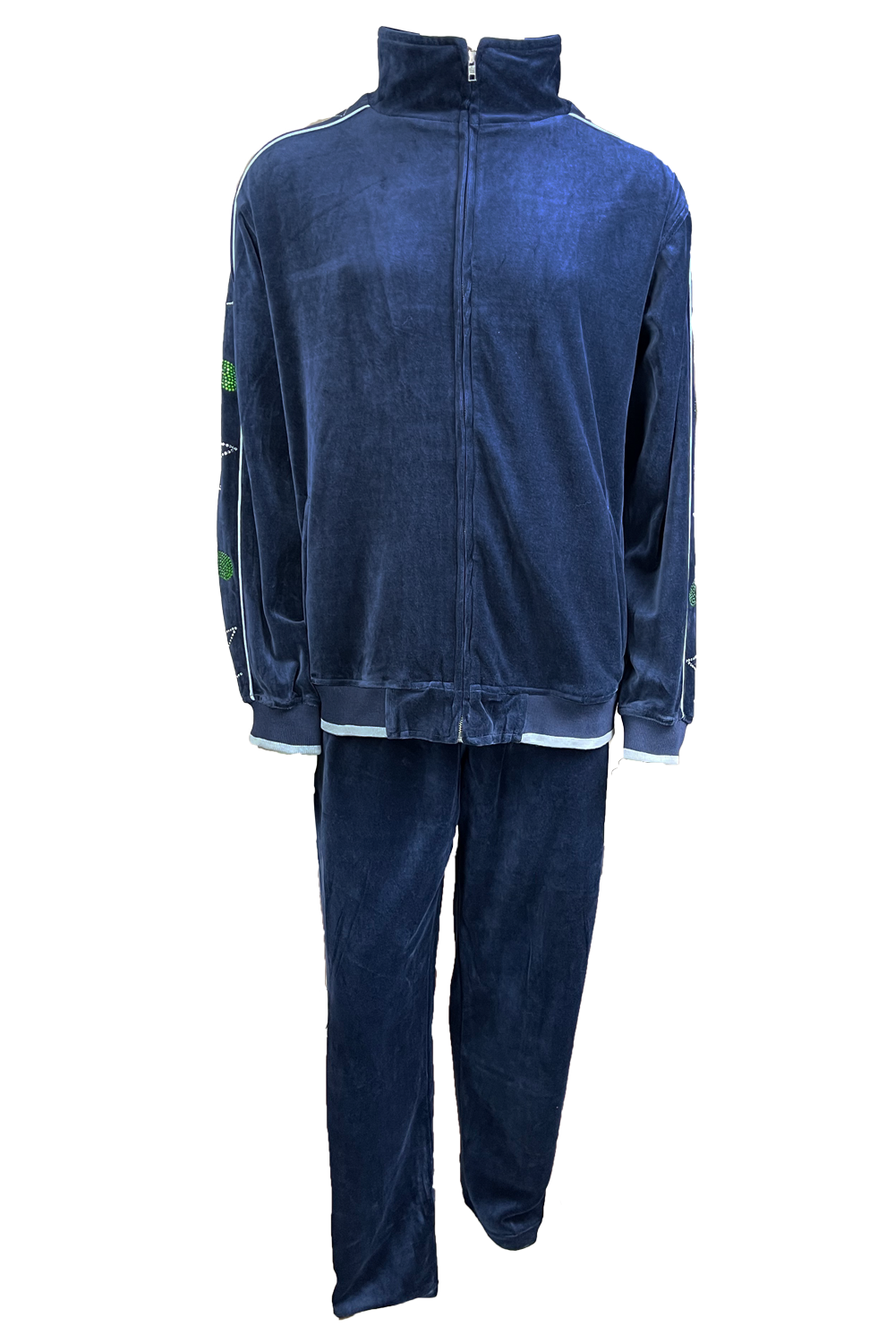 As if this velour sweatsuit doesn’t stand out enough on its own, you can add custom embroidery,embellishments, and rhinestones to your sweatsuit. Simply fill out the form below with embroidery type, thread color, rhinestones, and extra information to stylize your Sweatsedo!