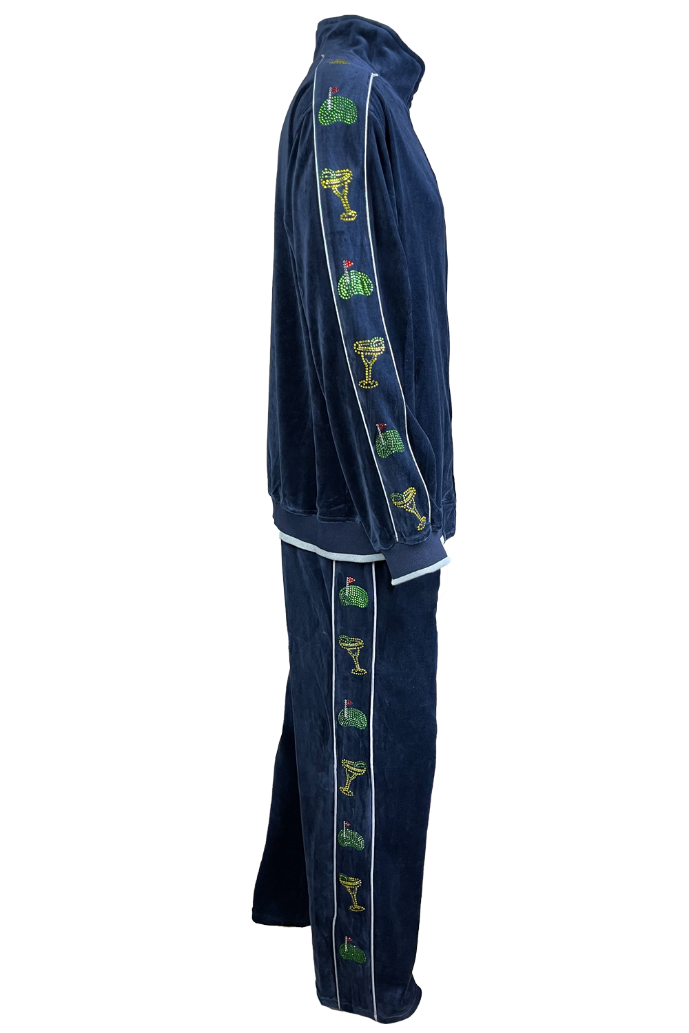 As if this velour sweatsuit doesn’t stand out enough on its own, you can add custom embroidery,embellishments, and rhinestones to your sweatsuit. Simply fill out the form below with embroidery type, thread color, rhinestones, and extra information to stylize your Sweatsedo!